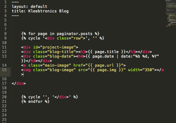 The syntax might look a bit strange, but it's essentially going through each "page" and grabbing the title, date, url, and image of each blog post. These are then displayed in the index.html file.