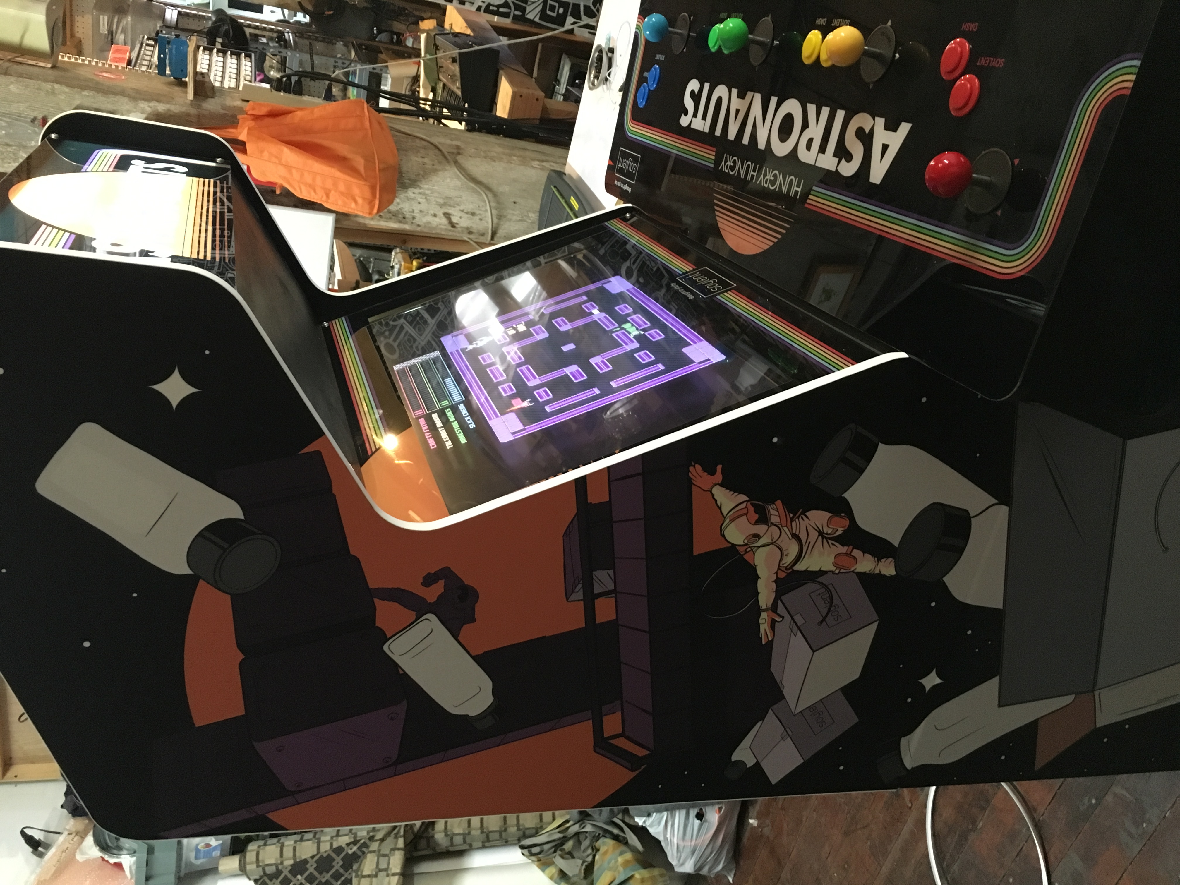 Soylent commissioned the Death By Audio Arcade to build two custom arcade cabinets along with a Soylent-specific arcade game for their Coffiest Cafe in Los Angeles.